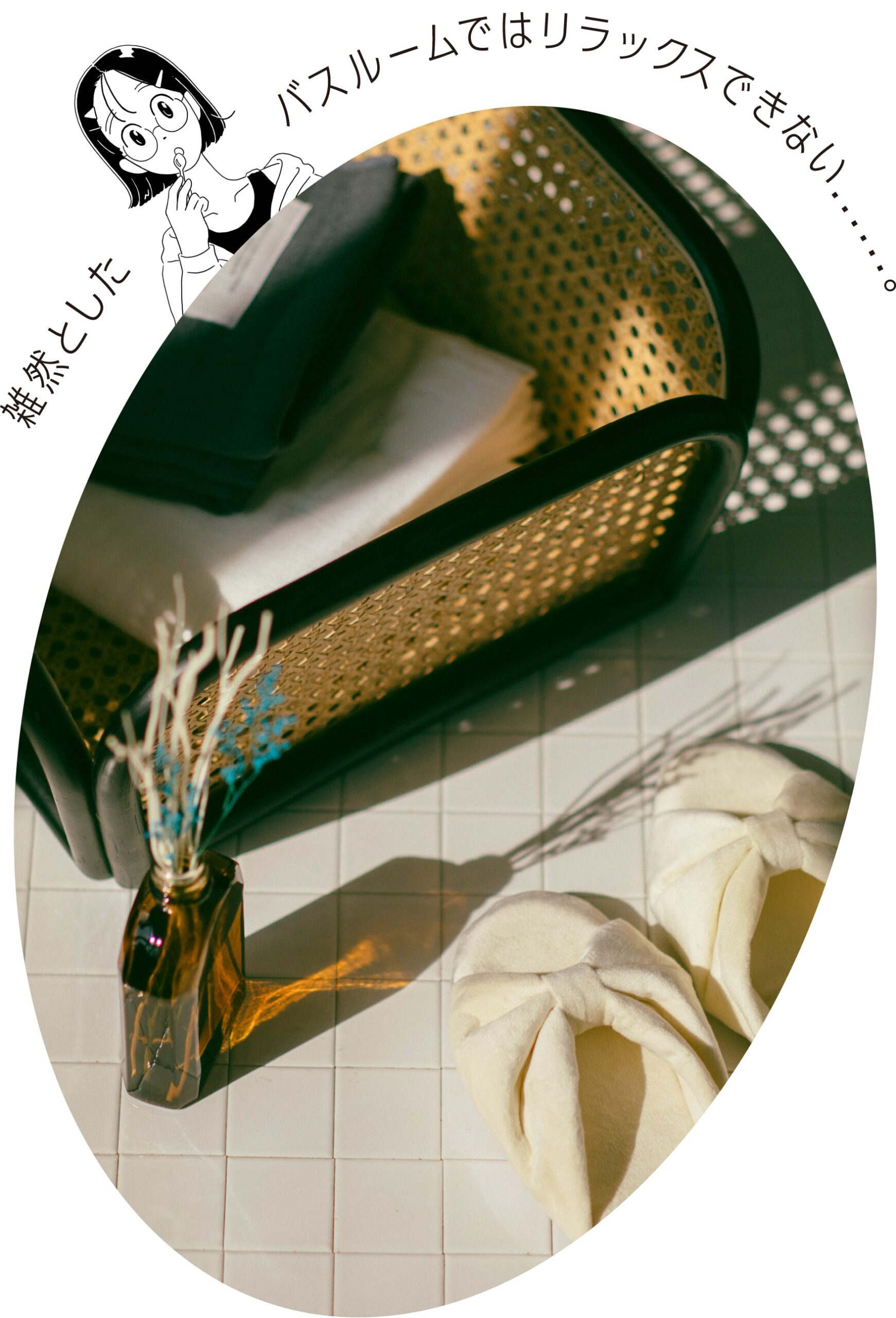 日本の住宅事情を考えると「着替えは洗濯機の上に」という方も多いと思いますが、リッチな気分に浸るなら素敵な脱衣カゴがあるとGOOD。良い香りに包まれたら、温まった体を冷やさないよう、すぐにスリッパを履くこともお忘れなく。